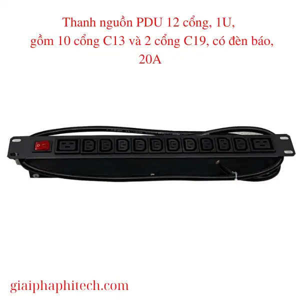 Thanh nguồn PDU 12 cổng C13 C19 chuẩn 19″, 1U, có đèn báo, tải 20A, dây điện 3×2.5mm dài 1.5m là giải pháp tối ưu cho các hệ thống yêu cầu độ ổn định cao. Sản phẩm được Giải Pháp Hitech phân phối chính hãng, đáp ứng tiêu chuẩn quốc tế và mang lại sự an tâm tuyệt đối cho người dùng.